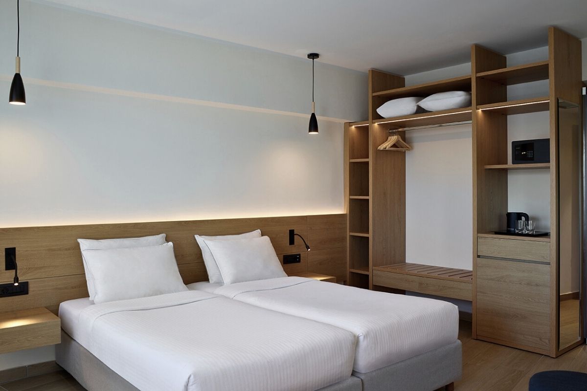 The Superior Land View Rooms, located on the fifth and sixth floors of the hotel, provide a refined and comfortable setting for up to two adults. Each room combines contemporary design with natural elements, offering a tranquil environment for guests wishing to explore and enjoy the island of Rhodes.
